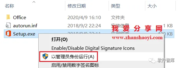 2.找到Setup.exe,鼠标右击选择【以管理员身份运行】