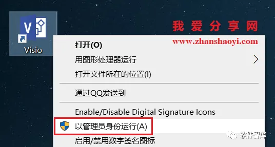 12.找到桌面Visio图标,鼠标右击选择【以管理员身份运行】