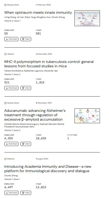 学术大平台Academia下的 Immunity and Disease(AID)值得你选择和投资!发表50天就有引用,看看文章的浏览量,下载量!