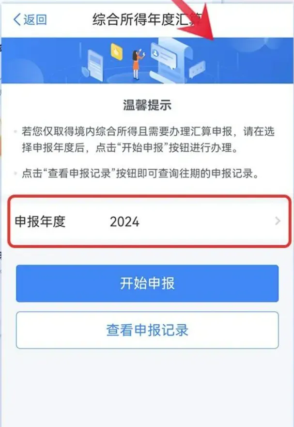 ·在申报页面,选择正确的申报年度(2024年)。