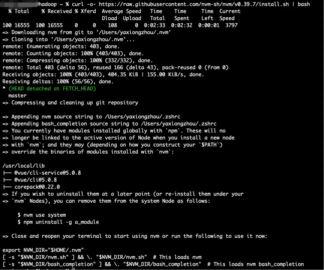 # 1. 先安装nvm(Node版本管理器)curl -o- https://raw.githubusercontent.com/nvm-sh/nvm/v0.39.7/install.sh | bash