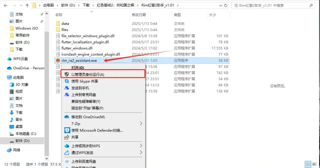 打开文件夹Rim红警2助手v1.01文件夹,必须“以管理员身份运行”,否则无法使用里面的几个小工具。