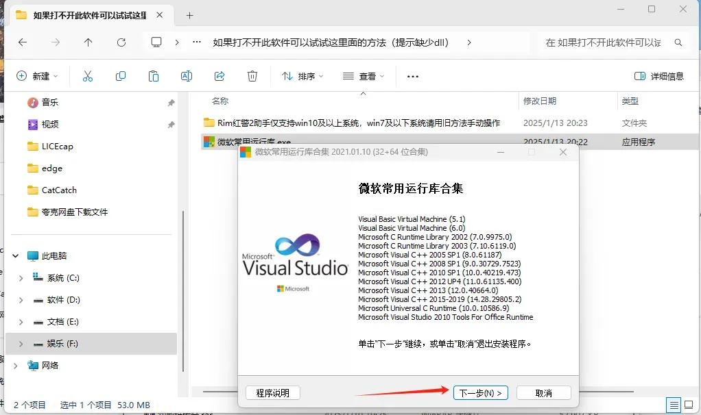 点击“微软常用 运行库.exe”,安装即可 。