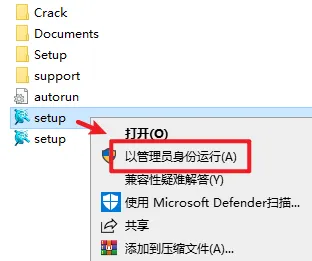 2.打开刚刚解压的文件夹,选中“setup”文件,右键选择“以管理员身份运行”