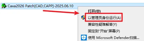 9.返回安装文件夹,双击打开“Crack”文件夹,选中“Caxa2026 Patch[CAD,CAPP]-2025.06.10.exe”右键选择“以管理员身份运行”