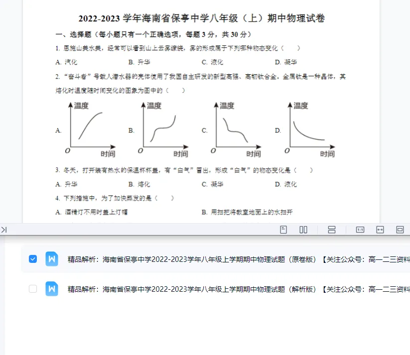 通过网盘分享的文件:【免费下载】精编海南省保亭中学20222023学年八年级上学期期中物理试题