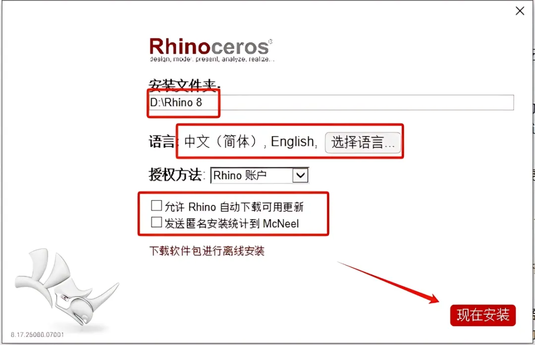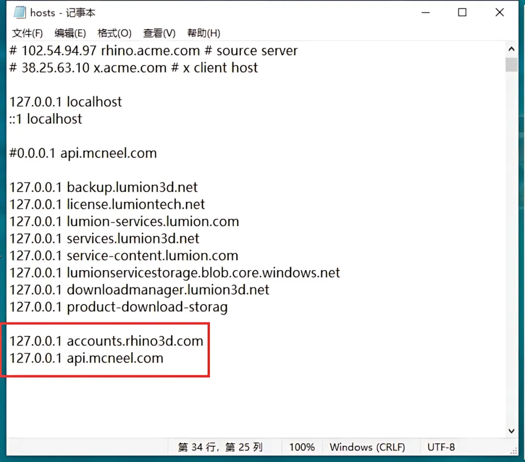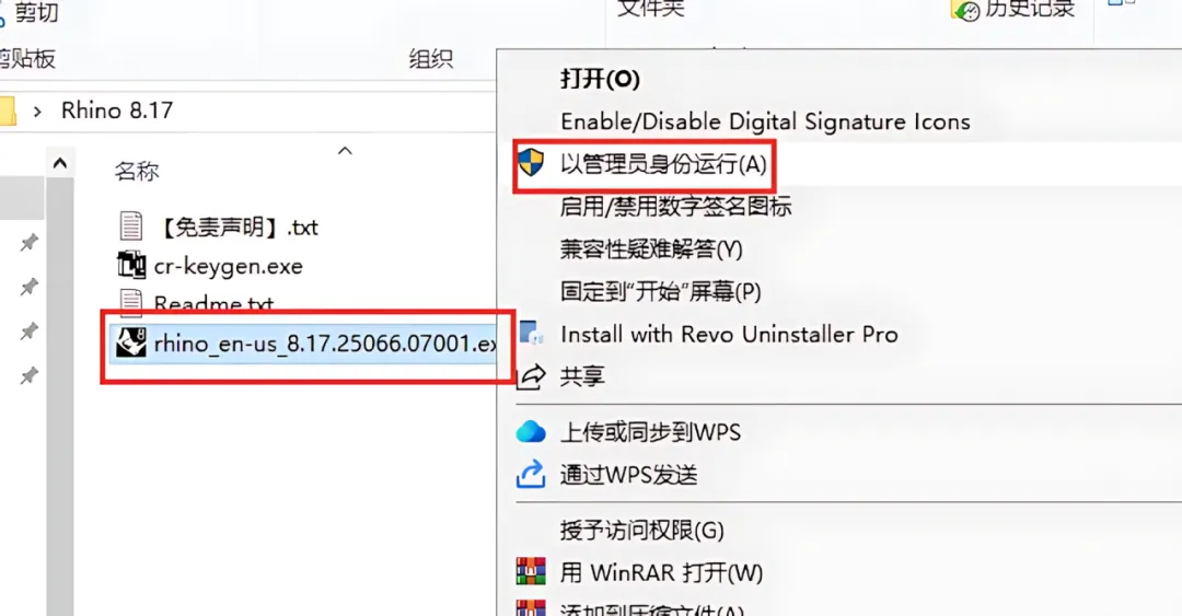 1.打开下载的犀牛Rhino软件安装包,鼠标右击压缩包选择【解压到当前文件夹】。 ![]() 2.鼠标右键【Rhino8.17】安装程序,选择【以管理员身份运行】。 ![]() 3.安装程序打开后,点击右下角的【⚙】。 ![]() 4.软件默认安装路径为系统C盘,需要设置软件安装路径的话,直接将C改为D盘或者其它磁盘即可,接着取消勾选下图所示的选项,然后点击【现在安装】。 ![]() 5.安装好后关闭安装程序。 ![]() 6.打开C盘的\Windows\System32\drivers\etc,找到hosts文件,鼠标右键选择打开方式-记事本 ![]() 7.在hosts文件内输入内容:127.0.0.1 accounts.rhino3d.com 127.0.0.1 api.mcneel.com 然后保存hosts文件 ![]() 8.在电脑控制面板打开防火墙,再点击【高级设置】 ![]() 9.点击【入站规则】-【新建规则】,弹出规则类型,默认程序,点击【下一页】 ![]() 10.点击【浏览】 ![]() 11.打开软件安装目录下(也就是步骤4手动更改的安装位置)的Rhino.exe ![]() 12.点击【下一页】 ![]() 13.勾选【阻止连接】,然后点击【下一页】 ![]() 14.名称设置为:Rhino屏蔽联网,然后点击【完成】 ![]() 15.出站规则新建,和入站规则一样的操作步骤,这里就不再讲解了,大家自行领悟 ![]() 16.点击【下一页】 ![]() 17.断网打开软件 ![]() 18.①输入你的qq邮箱 ②勾选我已阅读的选项 ③点击【选项】 ④点击【输入授权码】 ![]() 19.来到输入授权码界面,放在一旁不要关闭先 ![]() 20.以管理员身份运行注册机cr-keygen.exe ![]() 21.将注册机生成的授权码复制到软件界面对应框中,然后点击【继续】 ![]() 22.正在查找您的授权,请稍等 ![]() 23.提示“Rhino无法连接”,点击【继续离线验证】 ![]() 24.再次复制授权码,然后点击【继续】 ![]() 25.点击继续 ![]() 26.将注册机生成的验证码复制过去,然后点击【继续】 ![]() 27.授权验证已完成,说明软件激活成功,点击结束 ![]() 28.打开软件如图 ![]() |