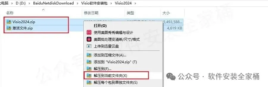 1.打开下载的软件安装包,然后鼠标右击压缩包,选择【解压到当前文件夹】。
