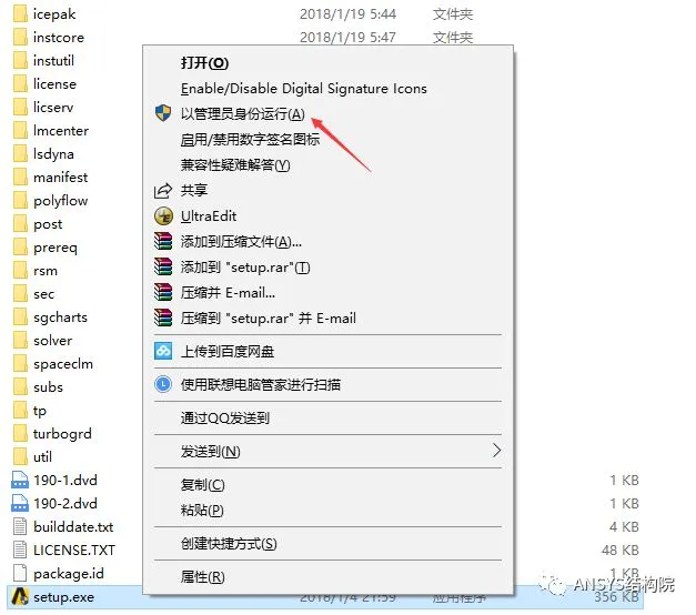 1、下载ANSYS19.0, 注意安装文件存放的位置不能有中文路径。