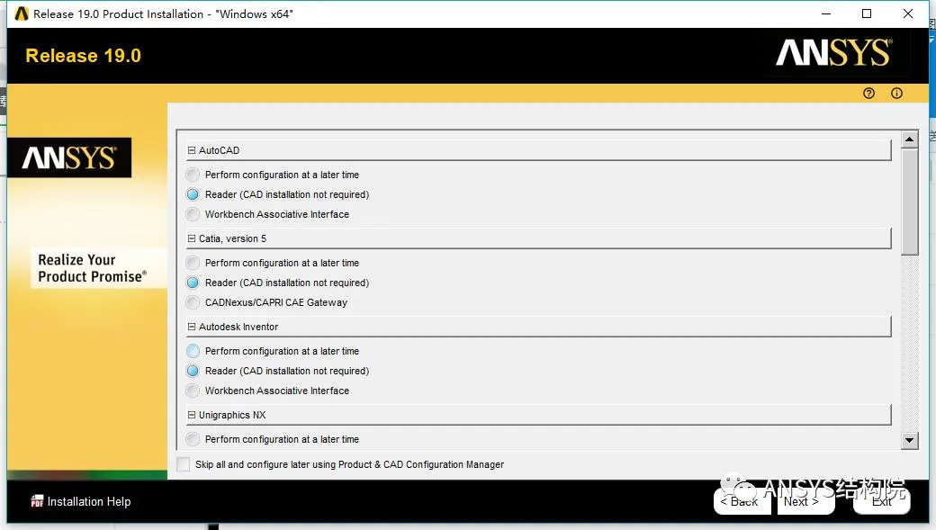 由于ANSYS需要的空间较大,可以根据自己的需要选择安装想要的模块,这里水哥只安装了如下模块,当然也可以按默认的全部选择。