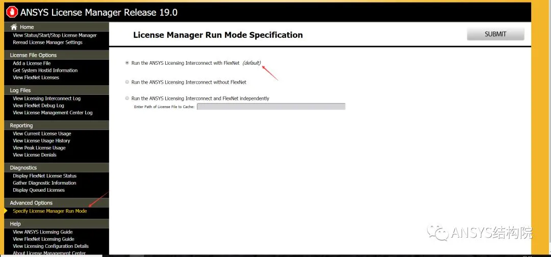 选中"Run the ANSYS Licensing Interconnected with FlexNet (default) is ticked。