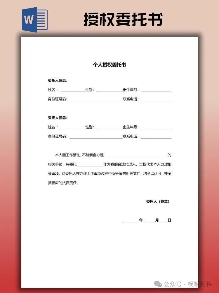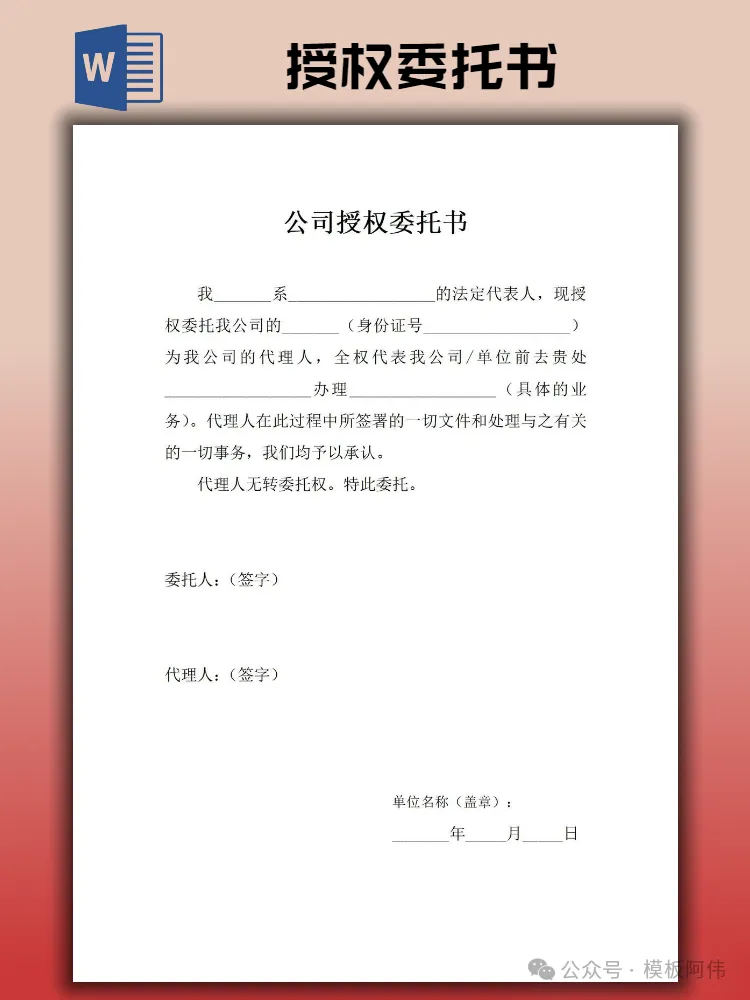 【2026】个人/公司授权委托书模板(word电子版下载)本文内容分享【授权委托书模板】