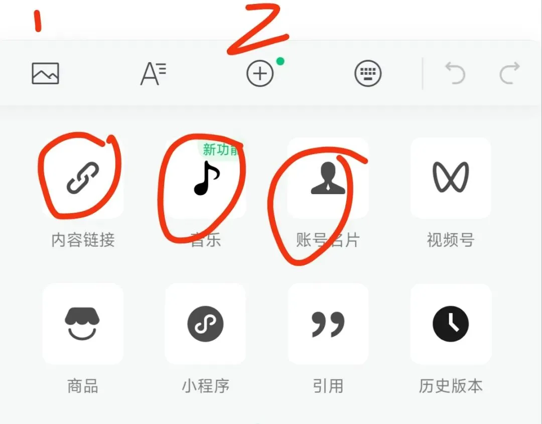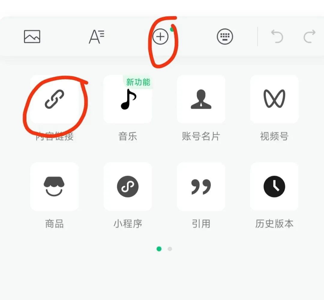 四、添加素材:(数字2下⊕)图片、音乐、链接一步到位