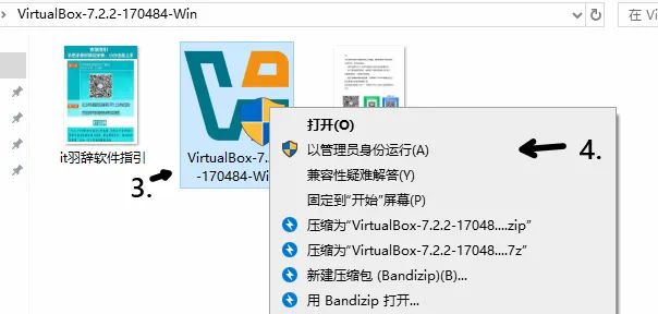 3.点击VirtualBox安装包,4.右键以管理员身份运行