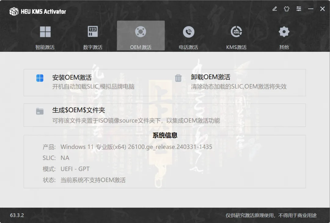 !本地自己搭建KMS服务器,一键激活 支持UEFI启动的电脑(很多老工具在这上面翻车) 界面极其简洁,几乎不需要看教程,新手3秒上手 还能做版本转换、密钥管理、激活状态检测、OEM信息修改、许可证清理……