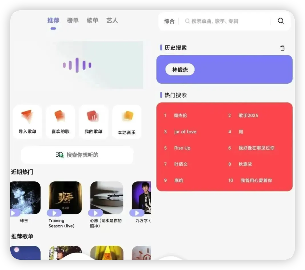 这是一款高颜值的听歌工具,无需注册登录即可使用,支持全网歌曲搜索。