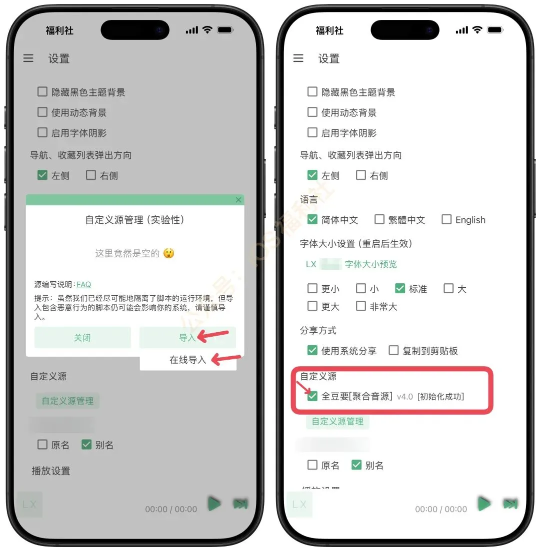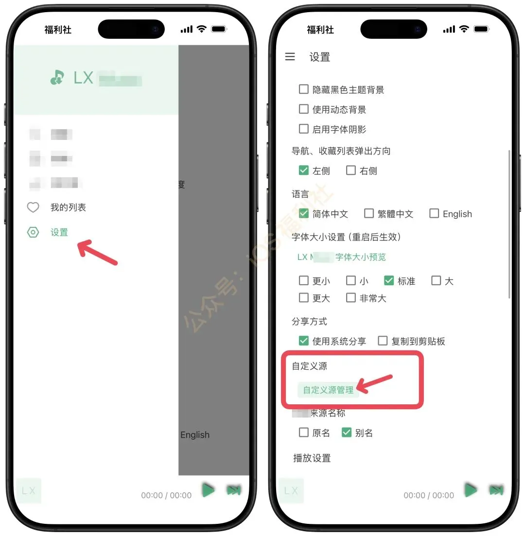 打开APP,点击左上角的设置(三条杠图标)-设置-自定义源管理