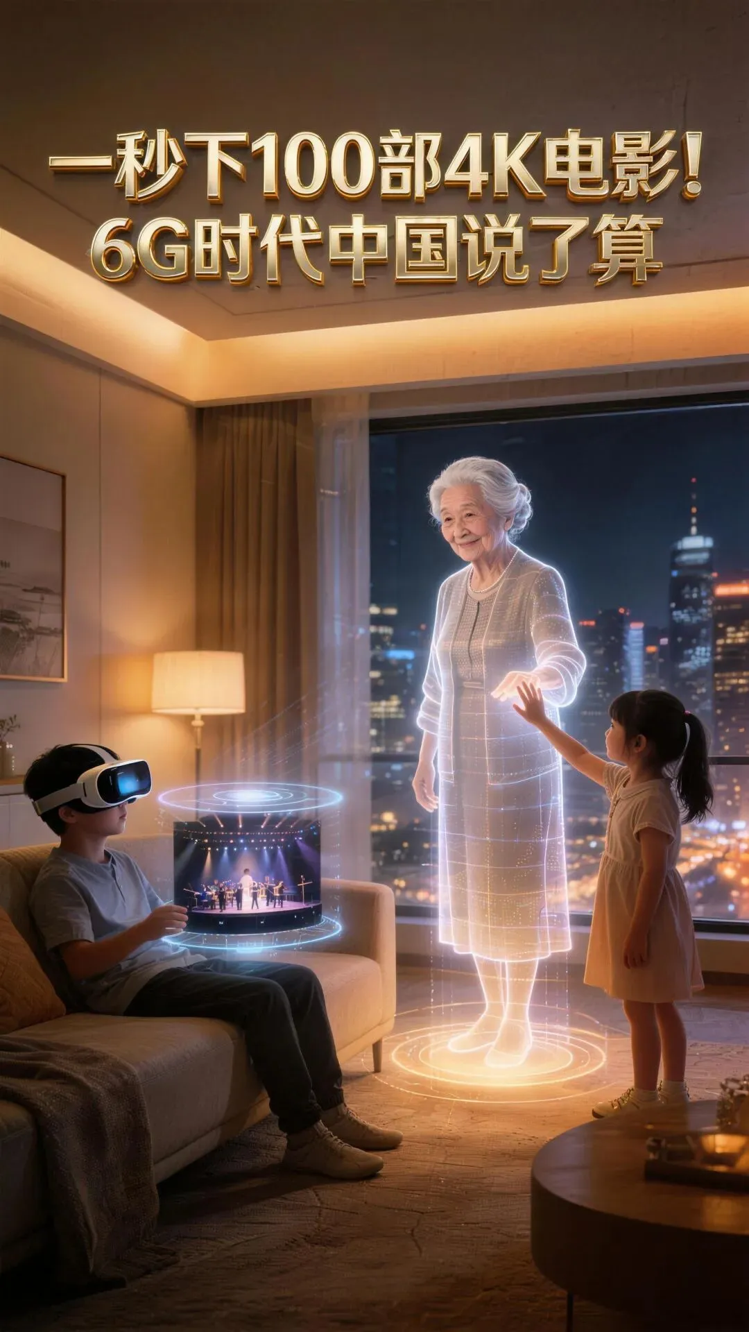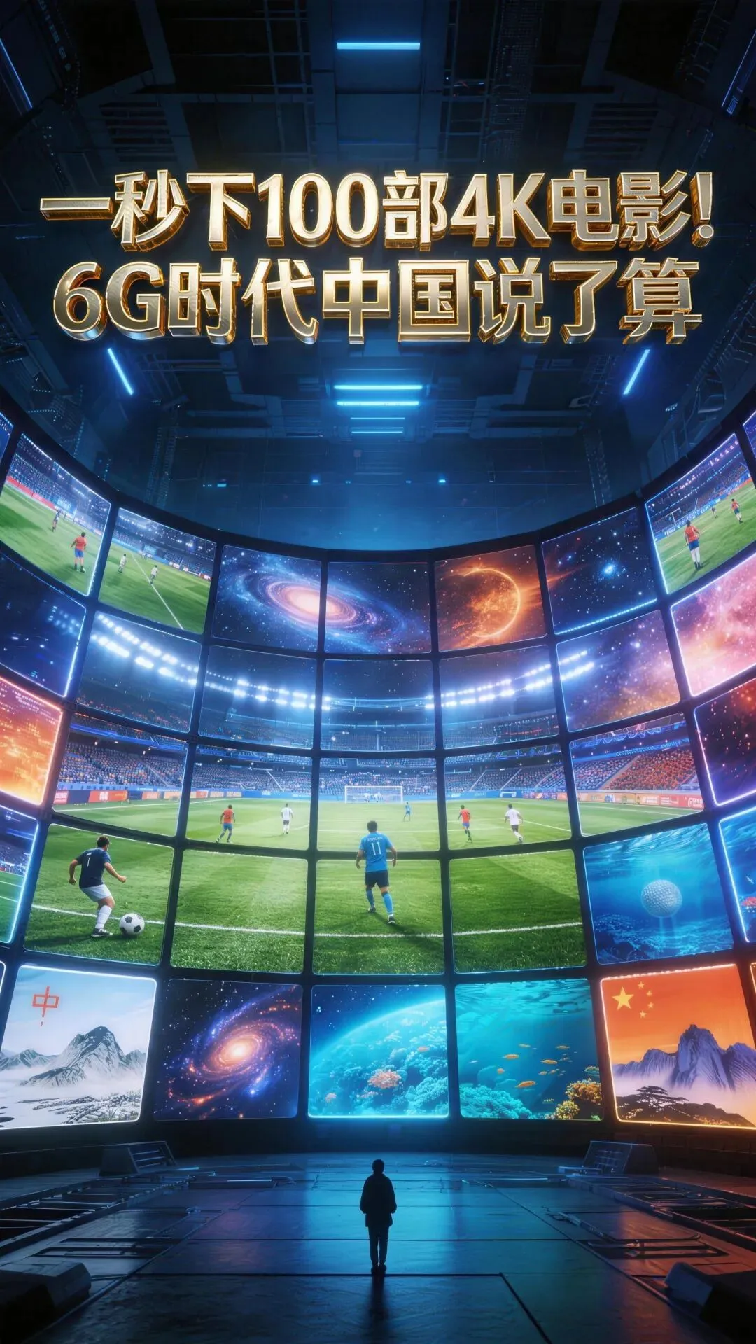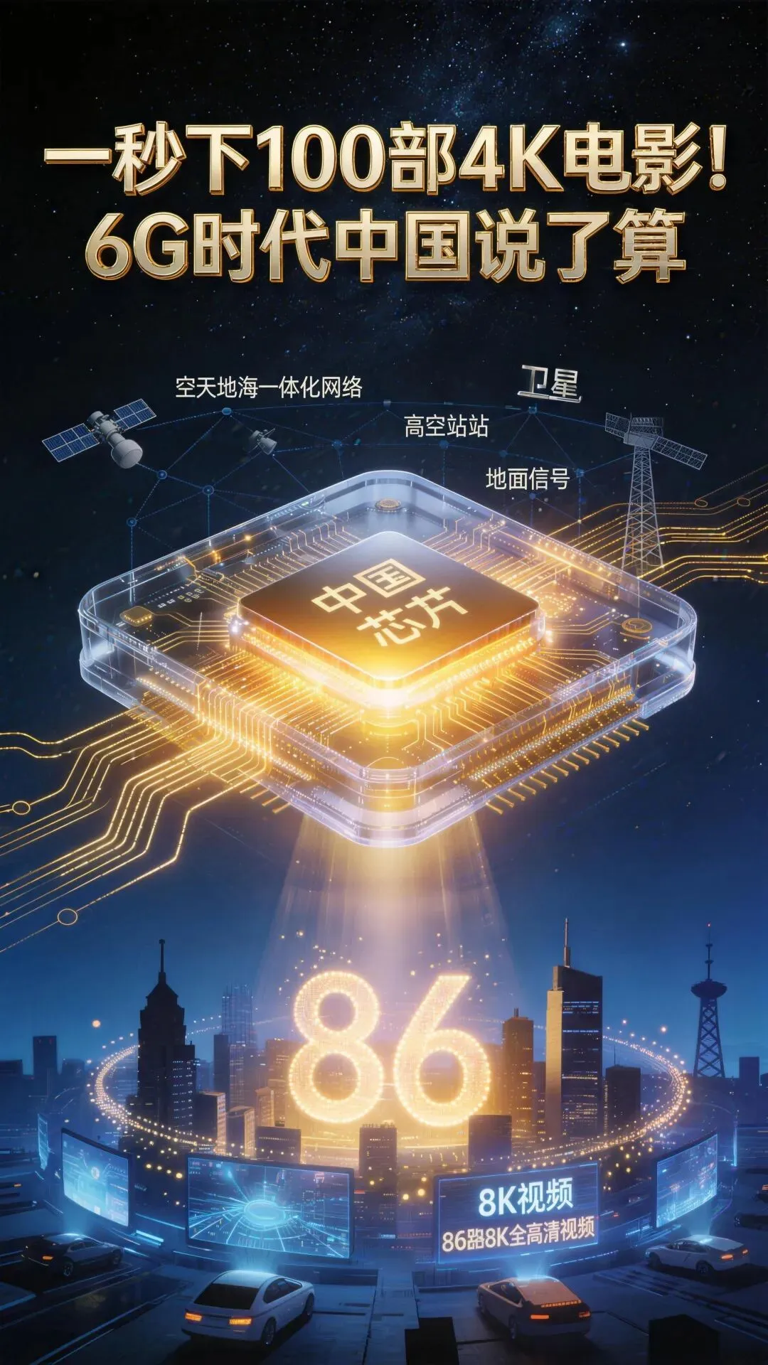 这些数字不好理解,我们换算一下。用6G传输数据,一秒钟可以下载100部4K电影,速度是5G的几十倍到上百倍。在体育馆、火车站等人多的地方,6G可以同时稳定传送86路8K超高清视频,大家用网络不会卡顿。