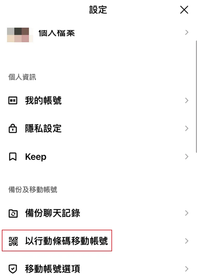1.设置 → 「以行动条码移动账号」