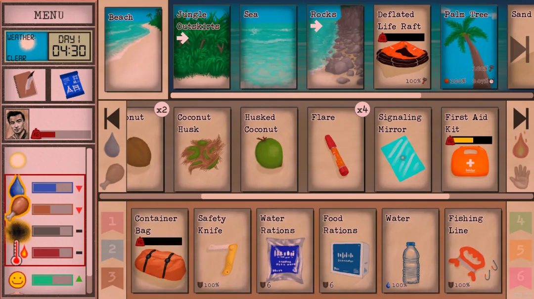 「卡牌生存:热带岛屿」是一款基于卡牌交互设计出的荒岛求生游戏,是「Card Quest」的制作组的新作。