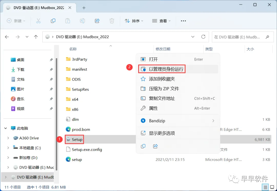 4、找到【Setup】应用程序,右键选择【以管理员身份运行】它