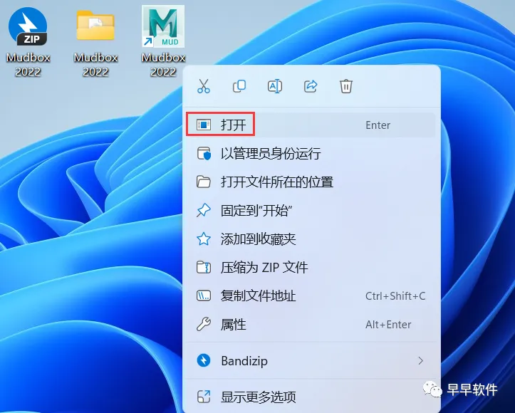 9、回到桌面,右键桌面上的【Mudbox 2022软件图标】,点击【打开】