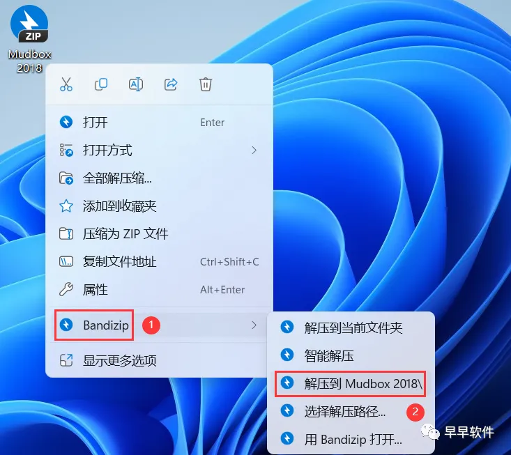 1、下载Mudbox 2018软件安装包到电脑上,右键选择【解压到Mudbox 2018\】