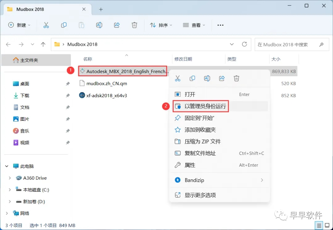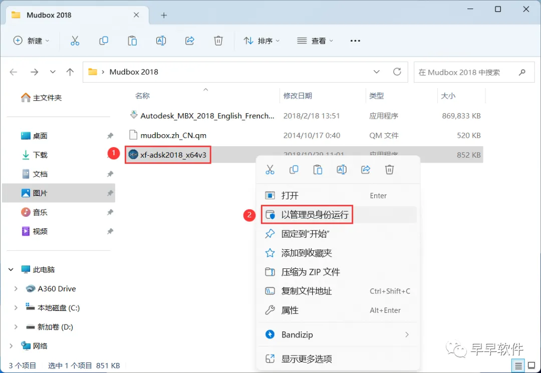 22、回到Mudbox 2018文件夹,找到【xf-adsk2018】程序,右键选择【以管理员身份运行】它
