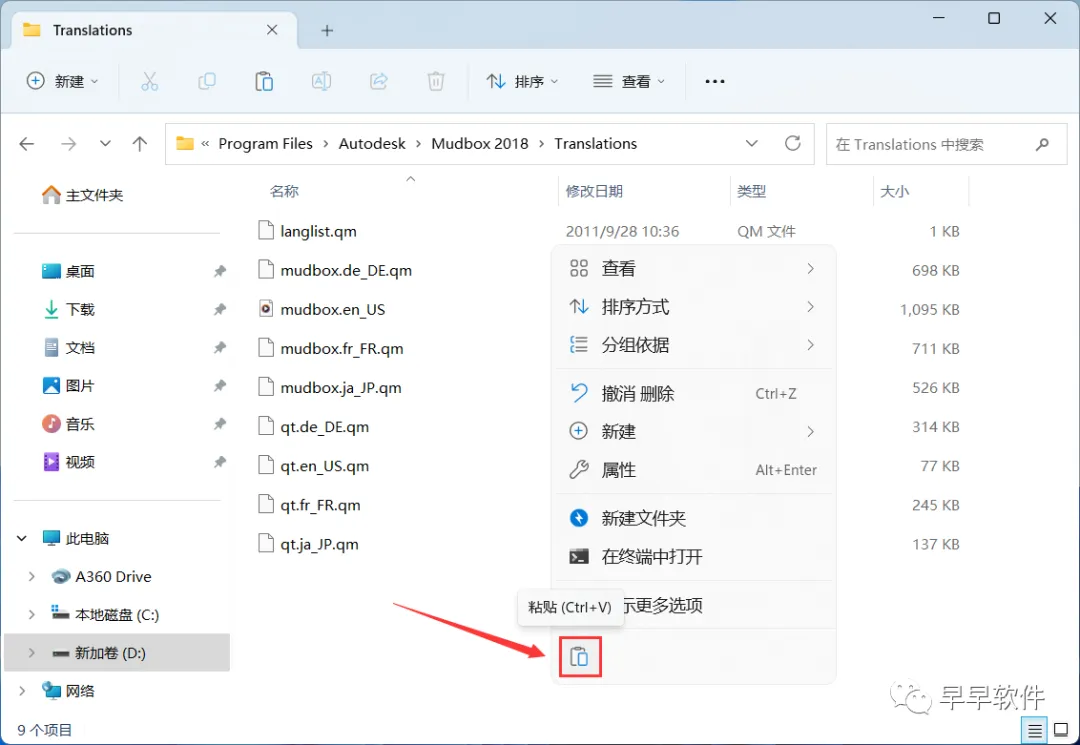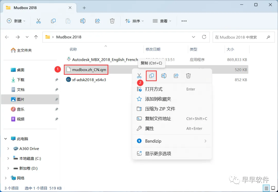 10、回到Mudbox 2018文件夹,找到【mudbox_zh_CN.qm】文件,右键点击【复制按钮】