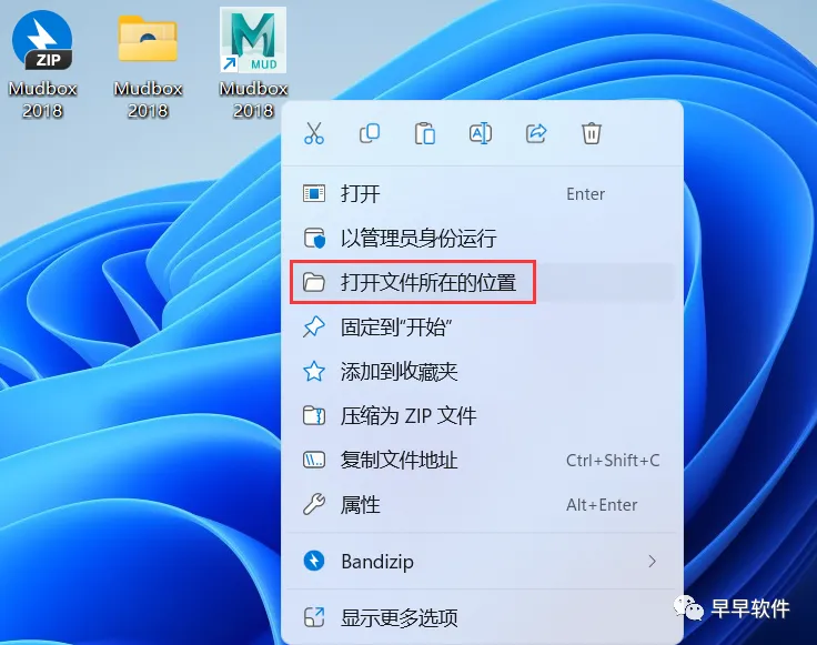 11、回到桌面,右键桌面上的【Mudbox 2018软件图标】,点击【打开文件所在的位置】