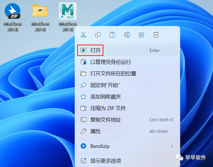 14、回到桌面,右键桌面上的【Mudbox 2018软件图标】,点击【打开】