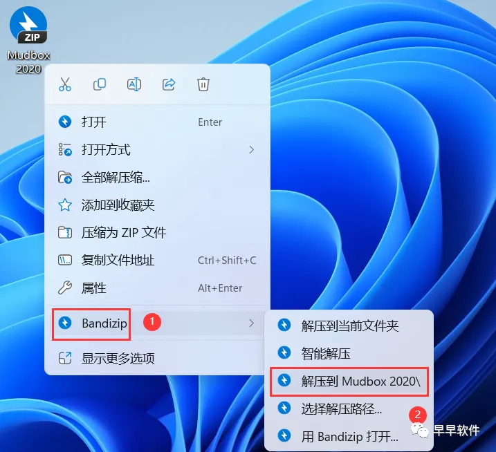 1、下载Mudbox 2020软件安装包到电脑上,右键选择【解压到Mudbox 2020\】