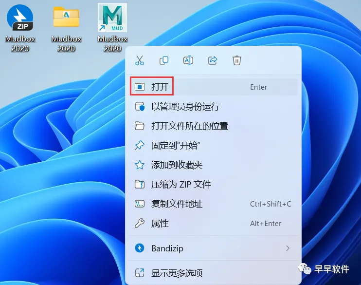 10、回到桌面,右键桌面上的【Mudbox 2020软件图标】,点击【打开】
