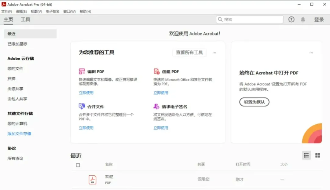 8.双击桌面Acrobat Pro DC图标,打开即可使用