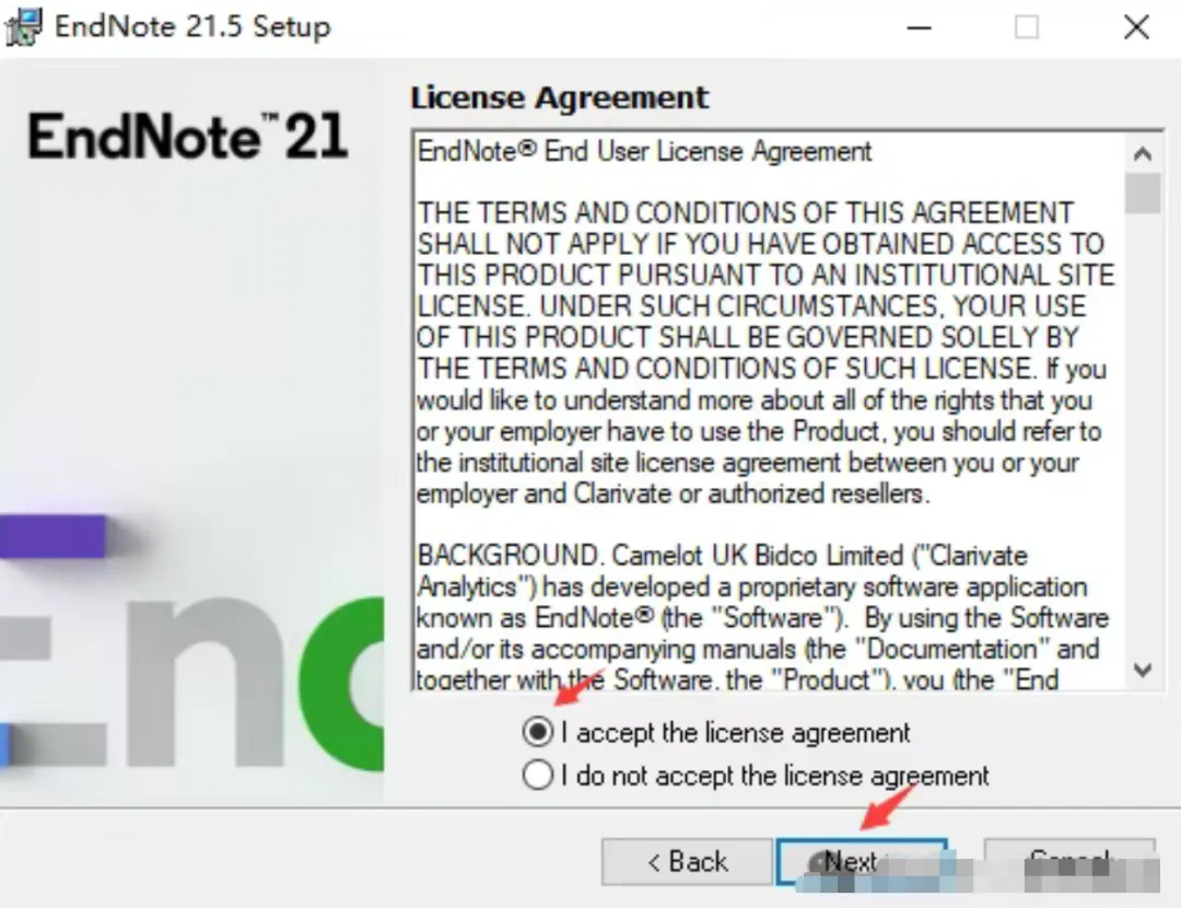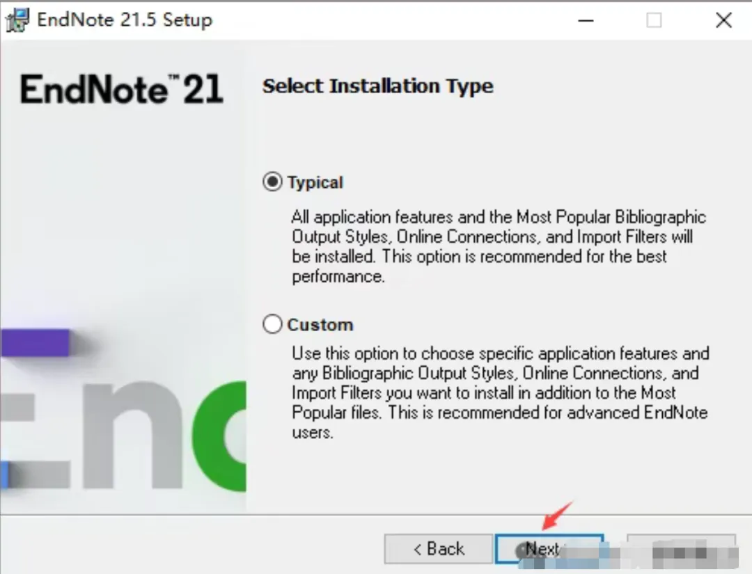 解压文件:将下载的压缩包解压至纯英文路径文件夹(例如 D:\EndNote21_Setup)。运行安装程序:进入文件夹,找到 EN21Inst.exe,右键点击并选择“以管理员身份运行”。安装向导: 点击“Next”进入下一步。 选择 “I would like a free trial”(30天试用),点击“Next”。 勾选“I accept the license agreement”,点击“Next”。 选择安装类型:建议选择 “Custom”(自定义安装)。 关键配置: 安装路径:点击“Browse”,将默认C盘路径修改为纯英文目录,例如 D:\Program Files\EndNote 21\。路径中严禁出现中文或空格。组件选择保持默认,点击“Next”。 等待安装:点击“Next”开始安装,进度条约3-5分钟。安装完成后点击“Finish”。