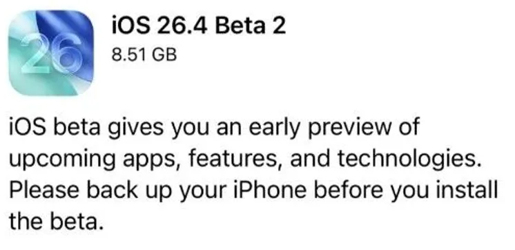 iOS 26.4 beta3 v.2 的版本号为:23E5223k