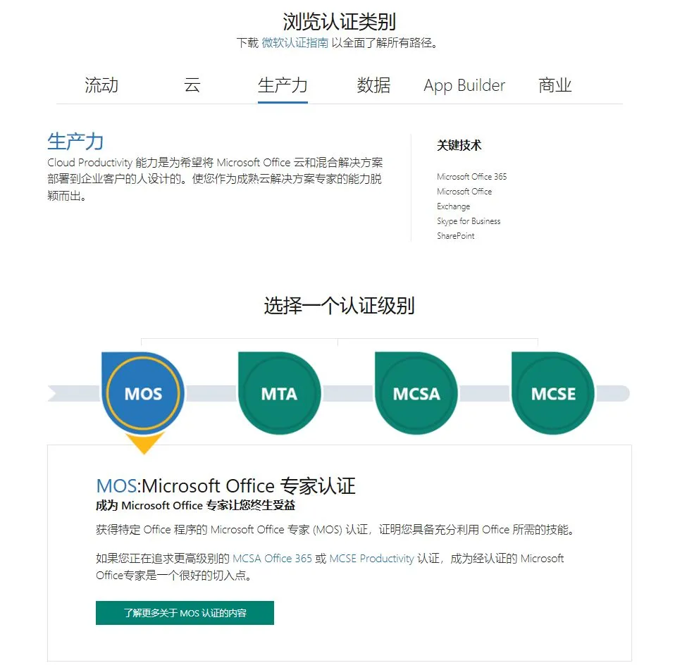 网址:https://www.microsoft.com/zh-cn/learning/certification-overview.aspx