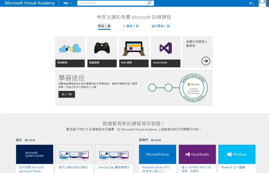 Microsoft Virtual Academy 邀请世界级专家提供适合 IT、开发人员、和资料专业人员的免费线上课程,帮助你培养技术能力并促成生涯发展。网站包含云端开发、游戏开发、Web 开发、智能 AI 等各类课程。
