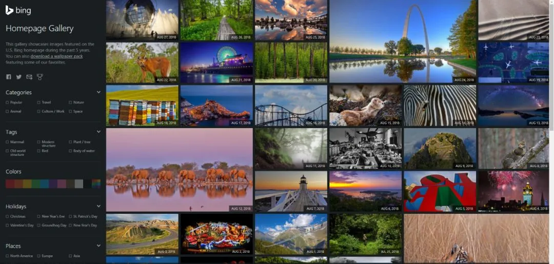 大家喜欢 Windows 开机时的壁纸吗?这个网站收录了所有 Windows 开机和必应搜索的壁纸,并按照时间、类型、国家等分类。喜欢的小伙伴不要错过哦!