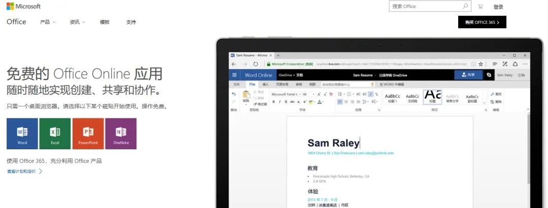 电脑没装 Office,需要编辑文件怎么办?别慌!你只需要一个浏览器,就可以在这个网页上免费编辑 Word、PowerPoint、Excel 或 OneNote。Office Online 基本包含了 Office 的大部分功能,能满足你基本编辑,而且你还可以邀请同事协作,共同编辑文档。