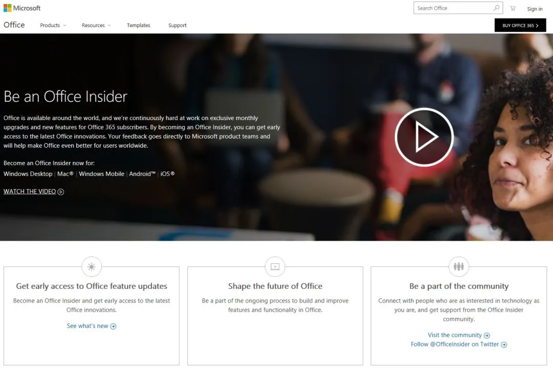 想体验最新的 Office 365 功能(如平滑切换,智能设计等等功能),可以在这个网站进行申请。