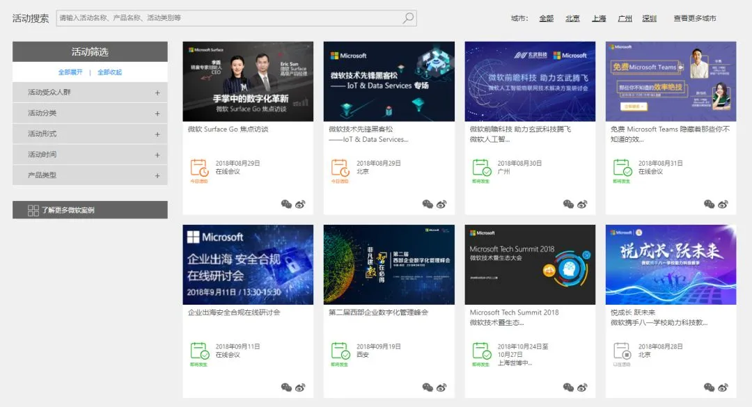 网站会发布微软在中国的各种大会活动,如果你是软粉,对微软的人工智能,企业服务等感兴趣,关注它并报名参与里面的活动吧!