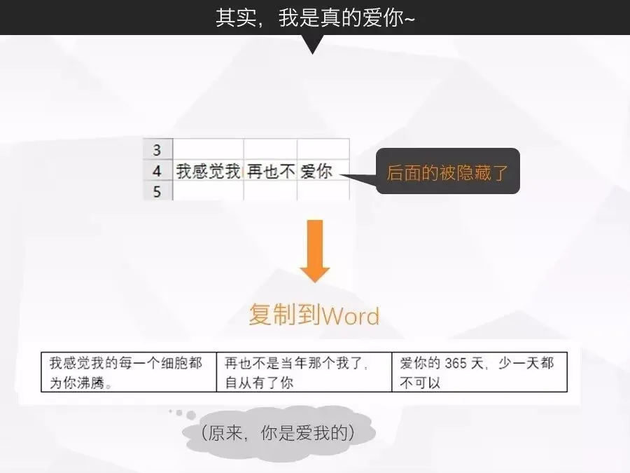 在Excel中的表格其实可以容纳很多信息,字比较多时,部分文字会被隐藏,导致表里不一。屏幕显示和打印结果不一致,这时候复制到word中排版和打印一目了然。