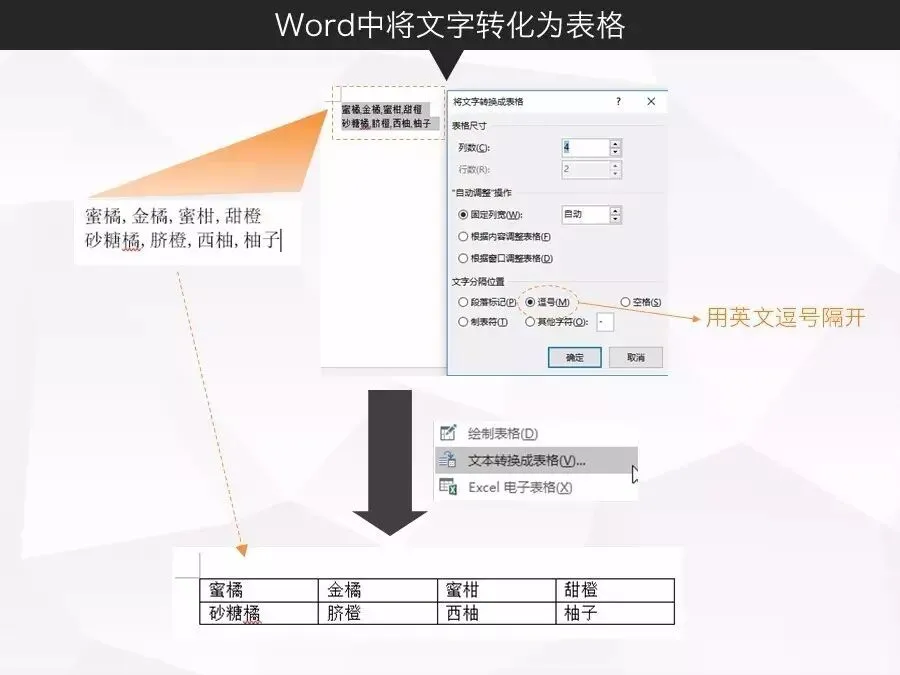 其实在Word中可以直接将文本转成表格,然后再将表格复制粘贴到PPT中。