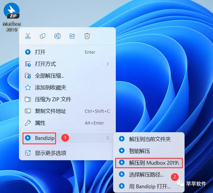 1、下载Mudbox 2019软件安装包到电脑上,右键选择【解压到Mudbox 2019\】