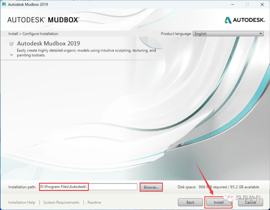 7、软件默认安装在C盘,可自定义更改软件安装位置,这里小编选择安装在D盘;点击【Install】