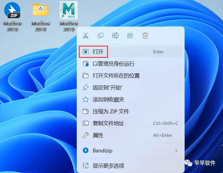 10、回到桌面,右键桌面上的【Mudbox 2019软件图标】,点击【打开】