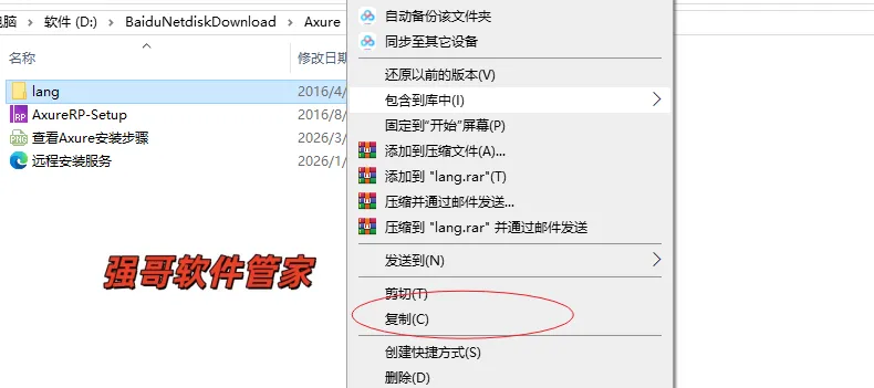 10.打开安装包文件夹,鼠标右击【lang】选择【复制】