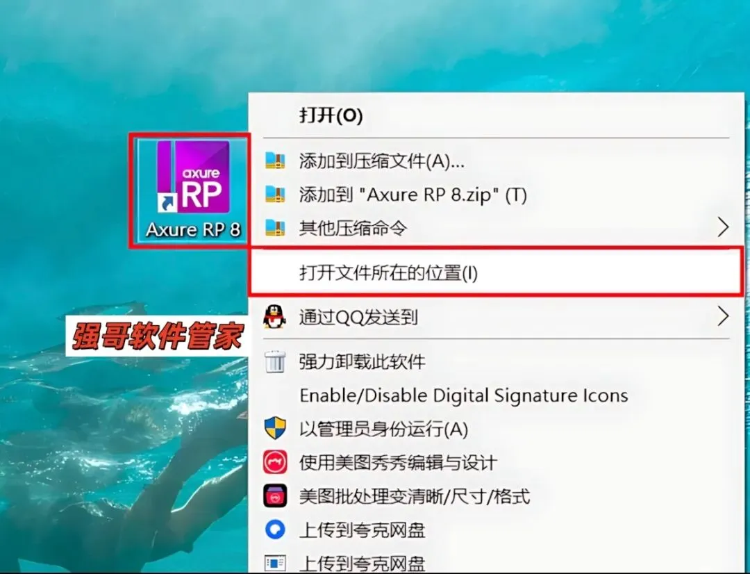 11.鼠标右击桌面【Axure RP7.0】选择【打开文件所在位置】