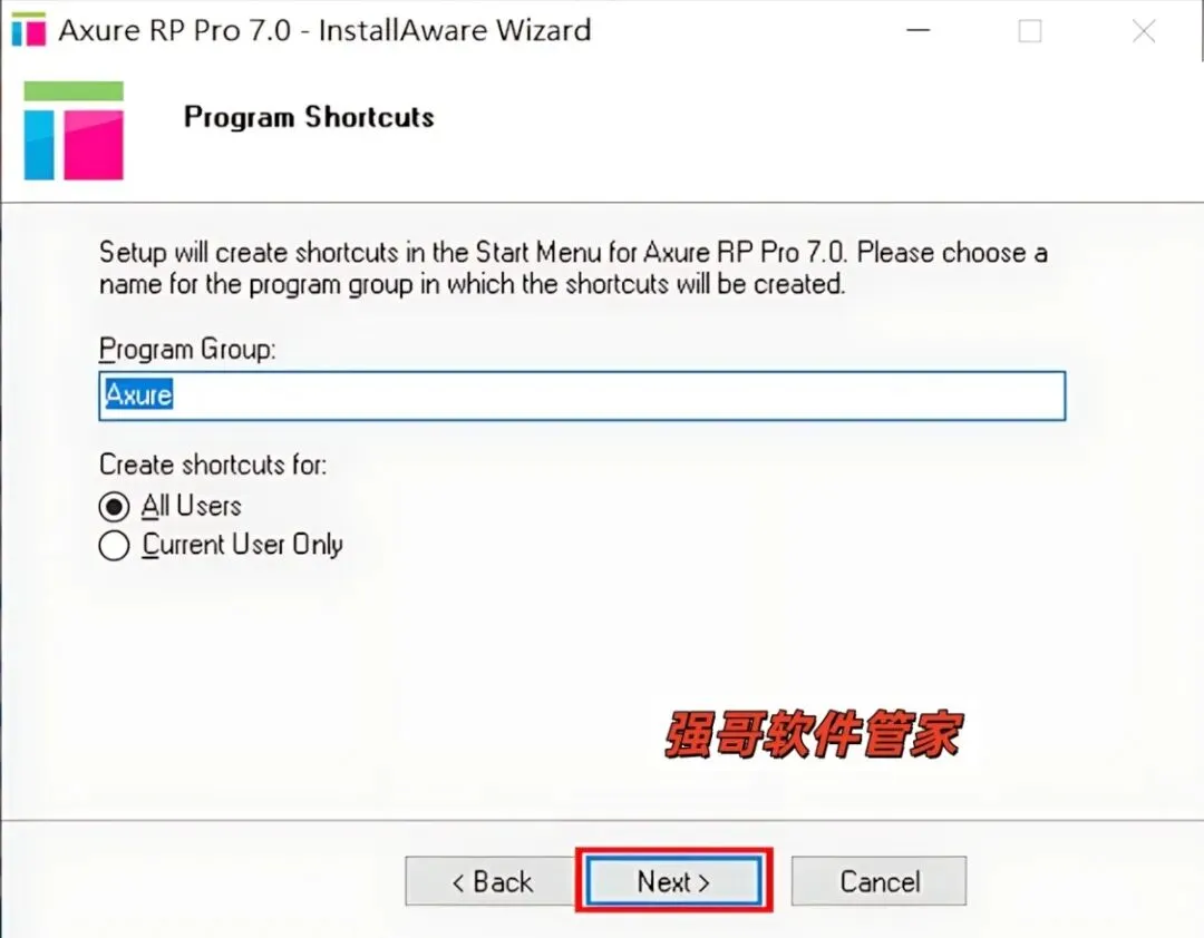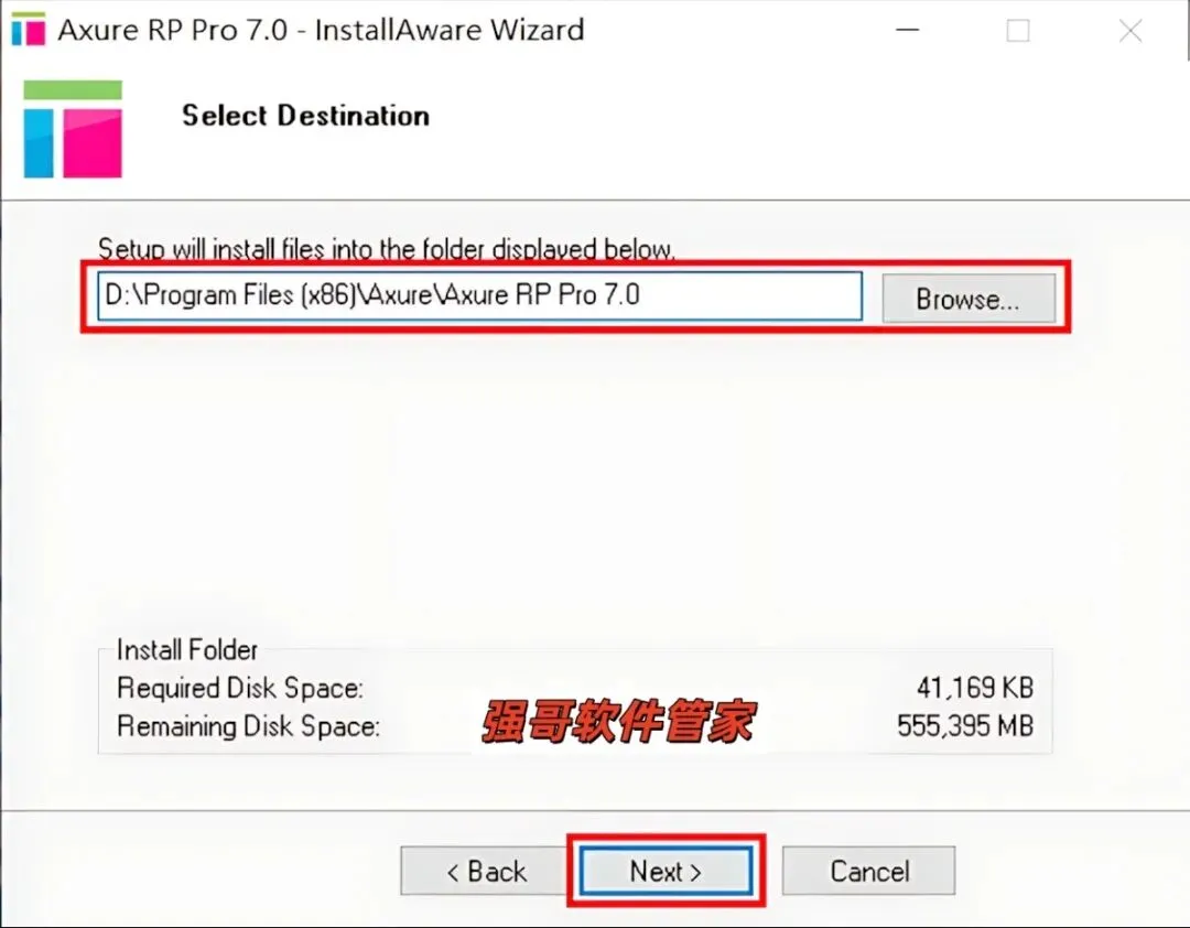 5.点击【Browse】可更改安装位置(建议不要安装在C盘,可以在D盘或其它磁盘下新建一个“Axure RP7.0”文件夹。注:安装路径中不能有中文),我这里是直接把“C”改成了“D”。然后点击【Next】